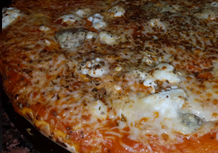 Tomate, épaule, lardons, oignons, champignons, fromage, origan